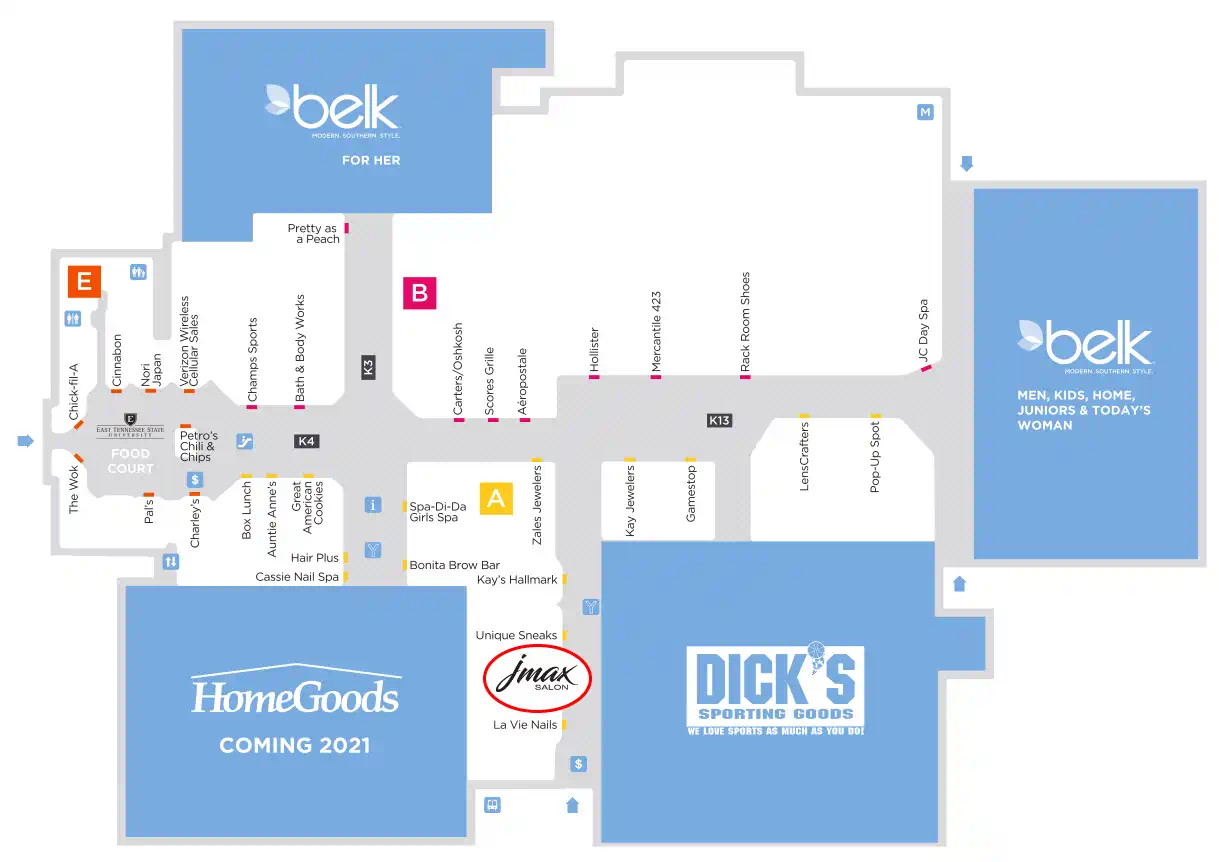 Located in the Mall at Johnson City Entrance B near Dick’s Sporting Goods